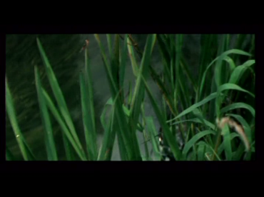 3) за камышами или травой – водная поверхность, по которой движется листок; камера сдвигается в гущу травы;